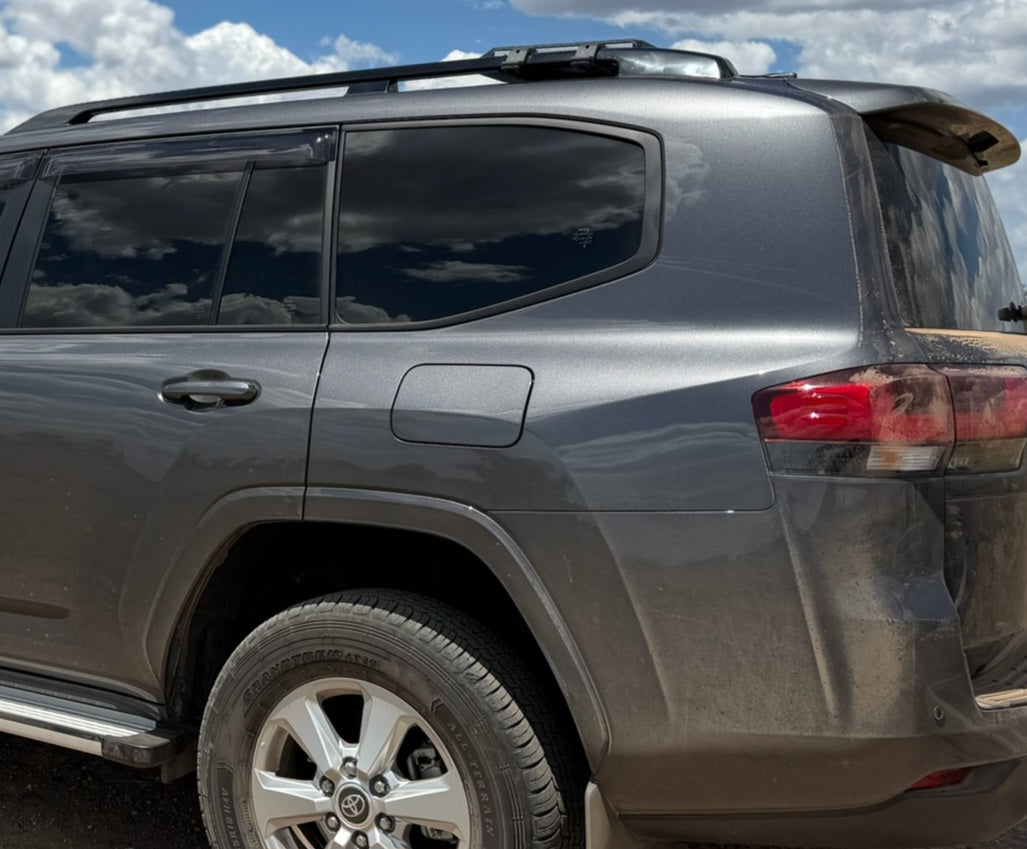 With the addition of carbon fibre composite brackets, Beam Me Up Technologies has designed a low profile, stylish, ruggerdised Starlink Mini Mount that bolts straight onto the OEM rails of the 300 series Landcruiser.